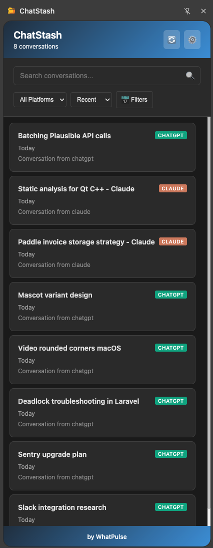 ChatStash is built by WhatPulse, the team behind productivity tracking software used by millions since 2003.