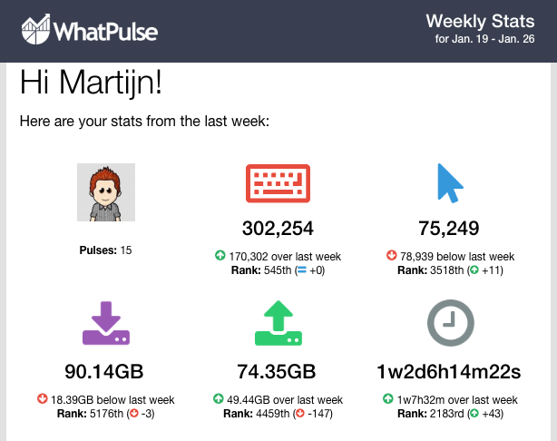 As you can see it contains the same information as the old format, with a few additions. You can now quickly see how you did compared to the previous week. How cool is that?!