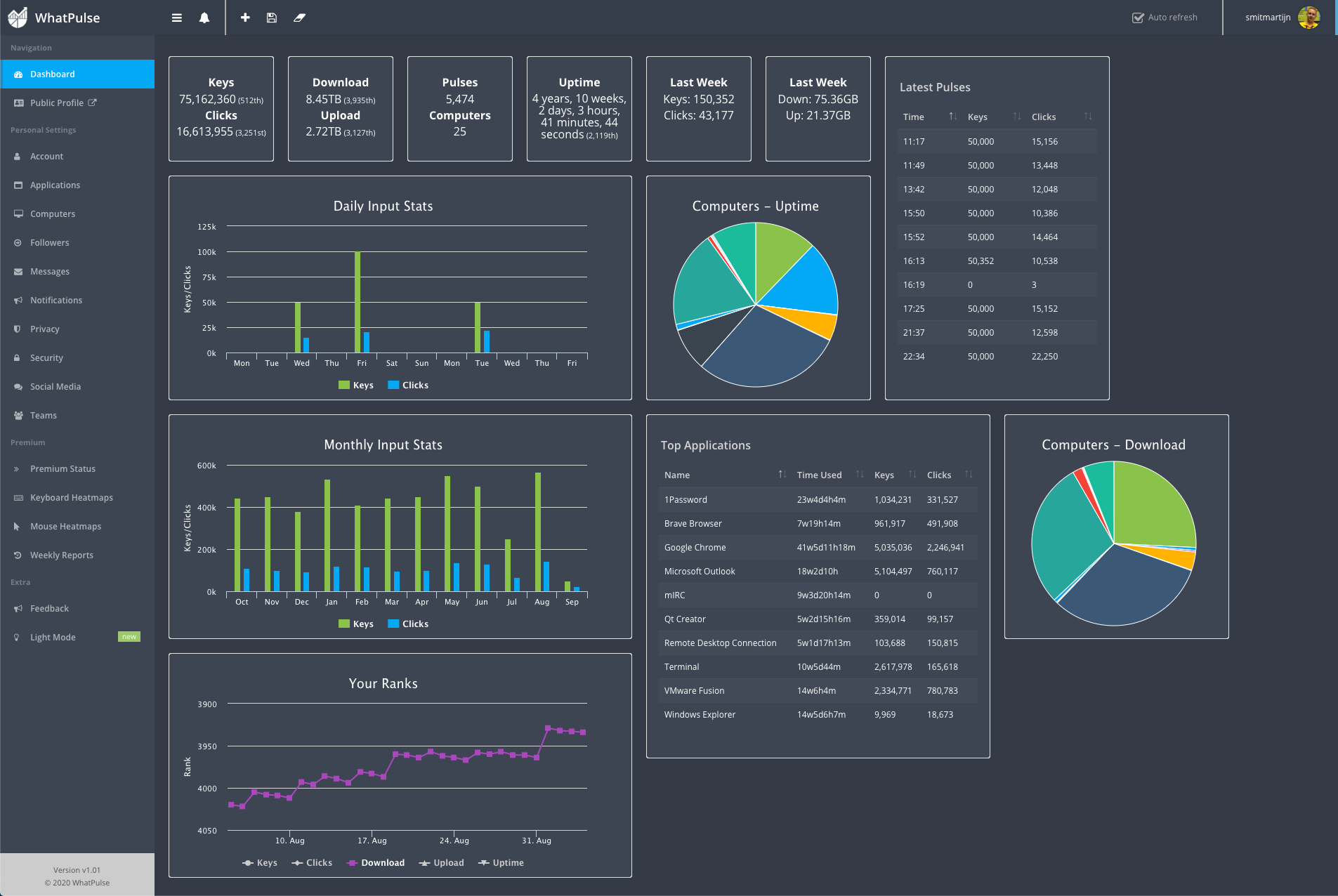 Dark mode will be effective throughout the entire dashboard. From your statistics dashboard to account management and all your Premium pages, everything will be in a stylish dark theme.